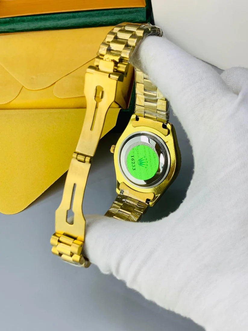 Luxury Full Gold Watch Date Style Watch – Elegant Diamond Markers & Stainless Steel Band